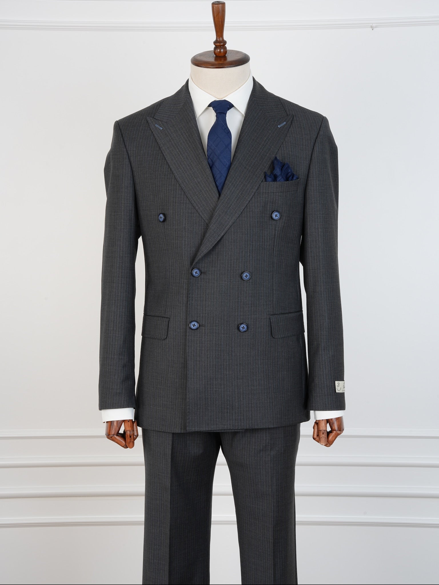 Men’s Striped Grey Wool Suit – Classic Double-Breasted Formalwear by Parez