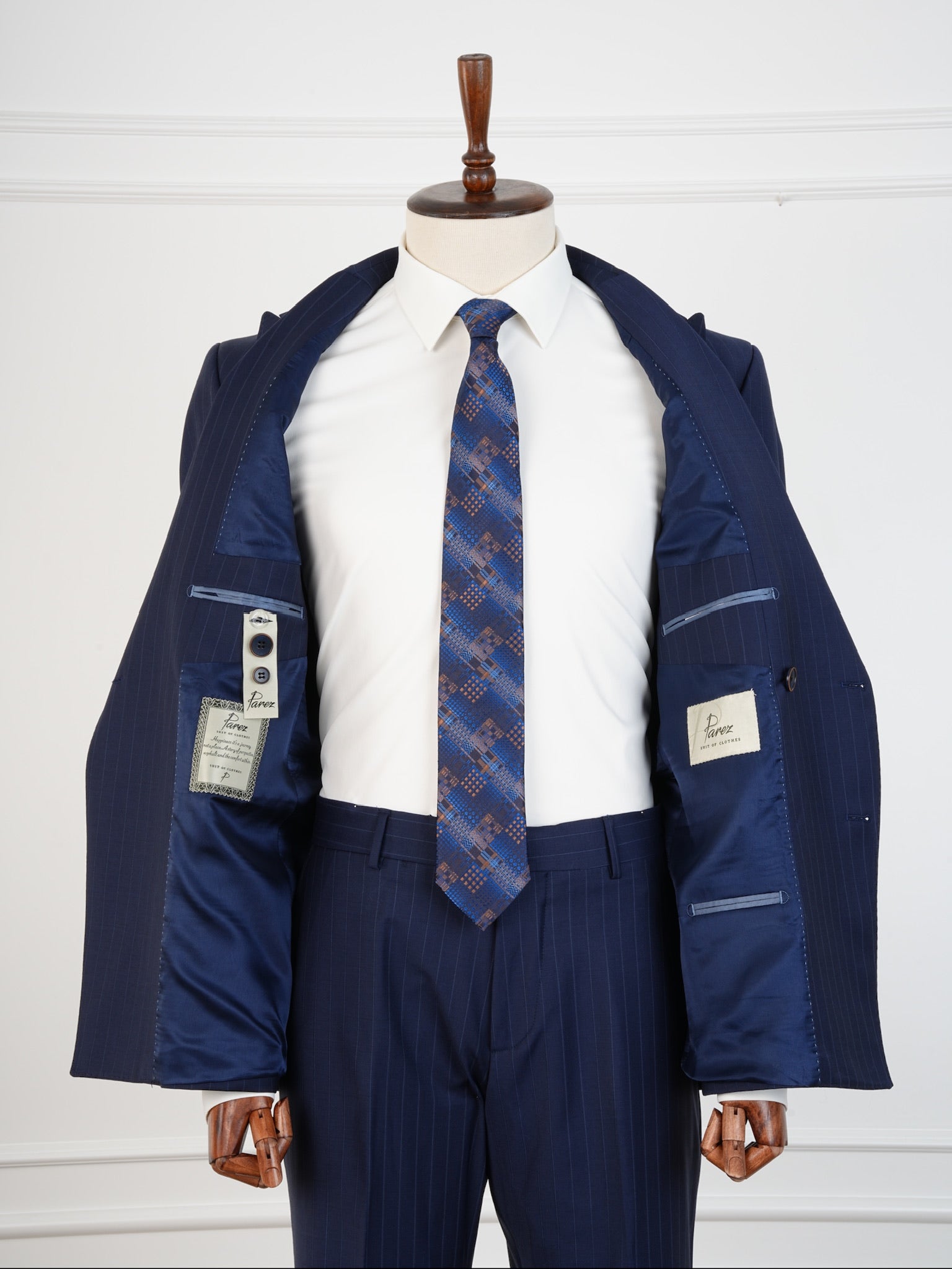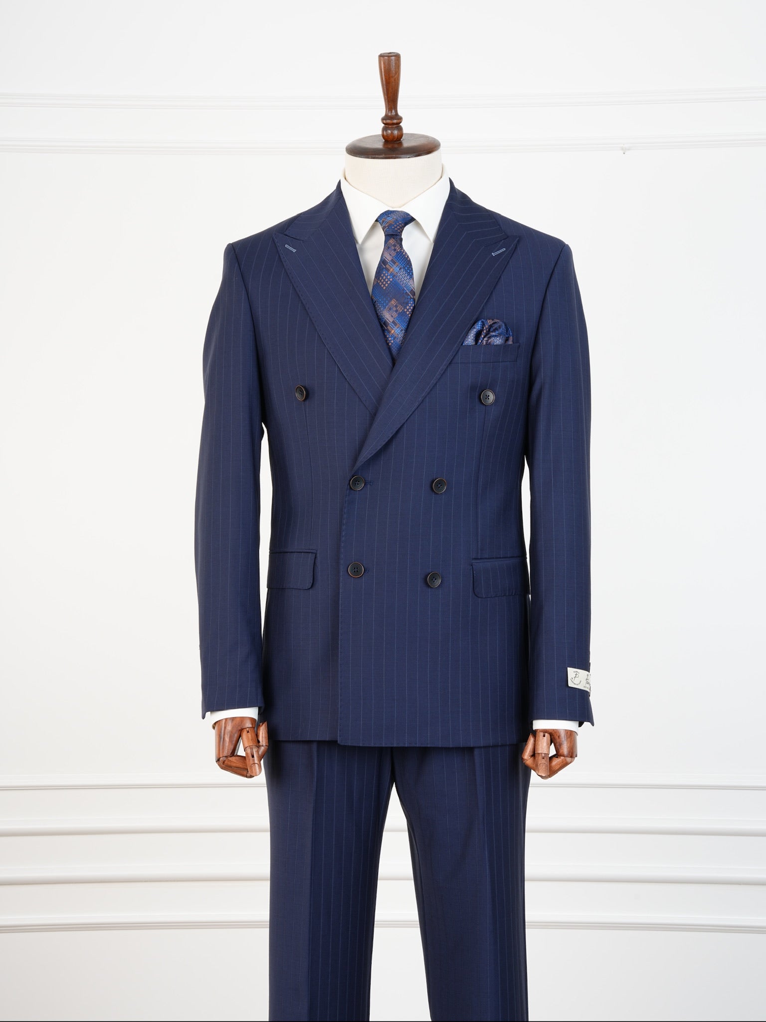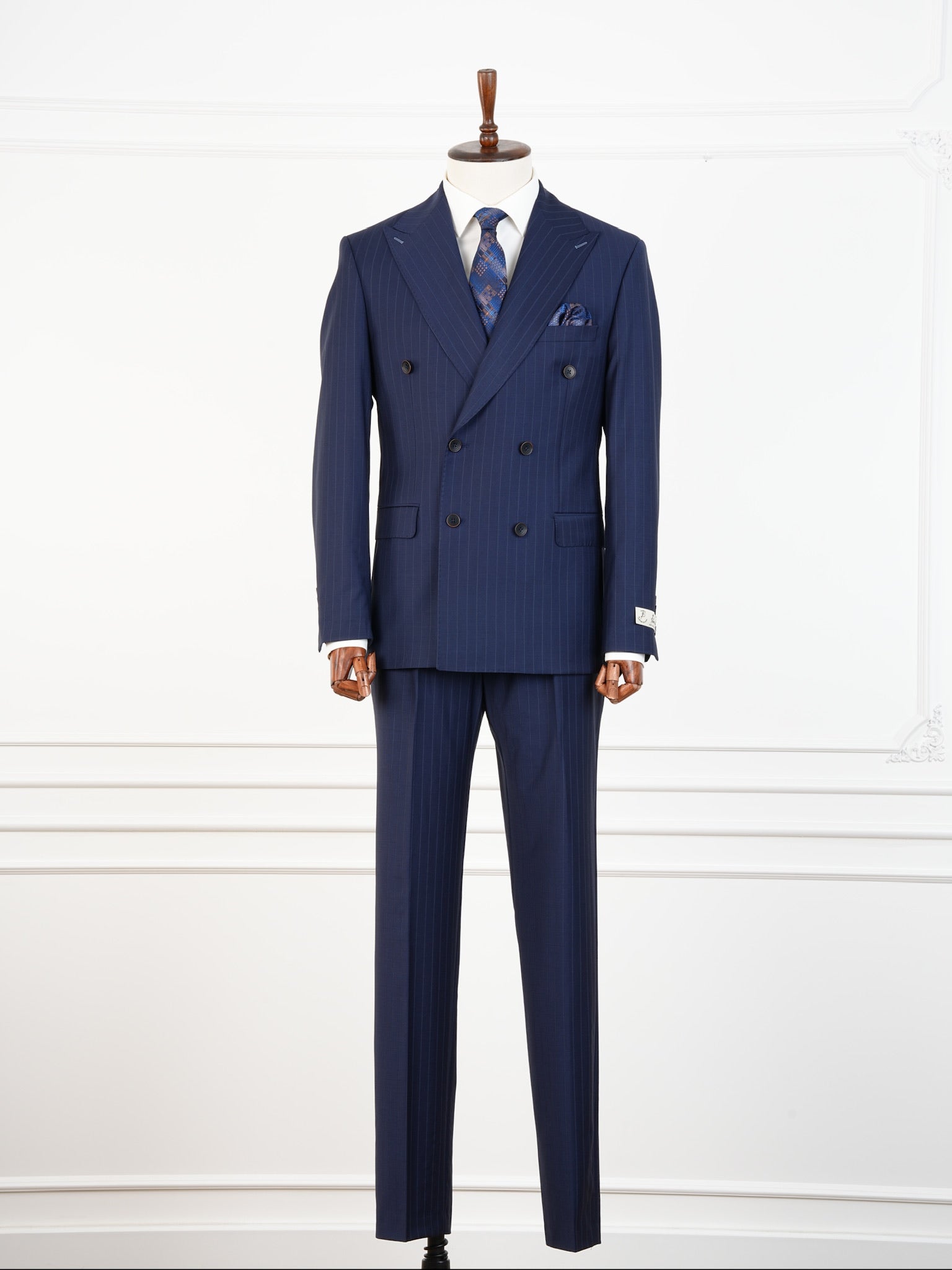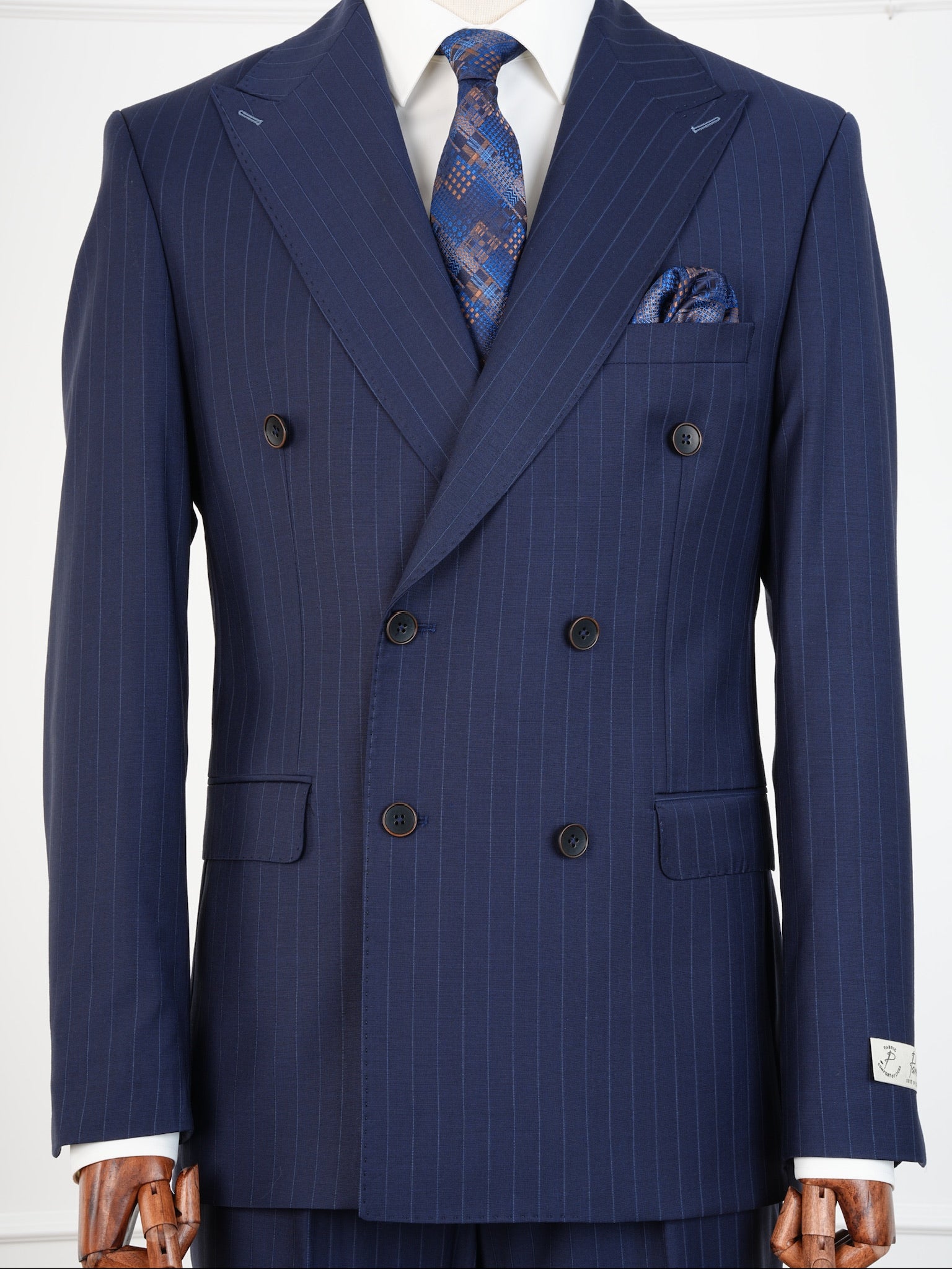 Royal Blue Wool Pinstripe Suit – Slim Fit Double Breasted