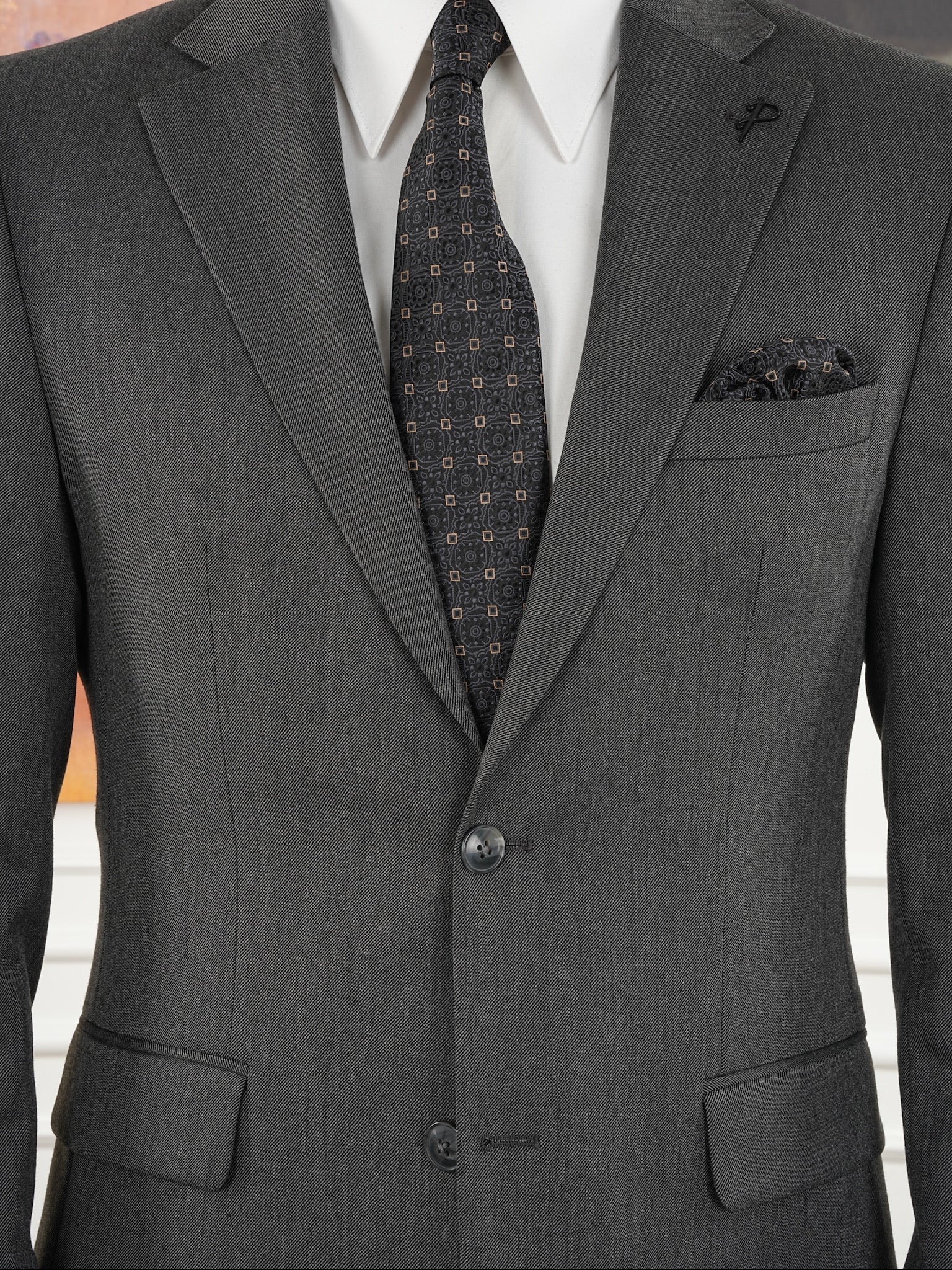 Tailored Fit Mid Gray Single Breasted Closure Full Suit