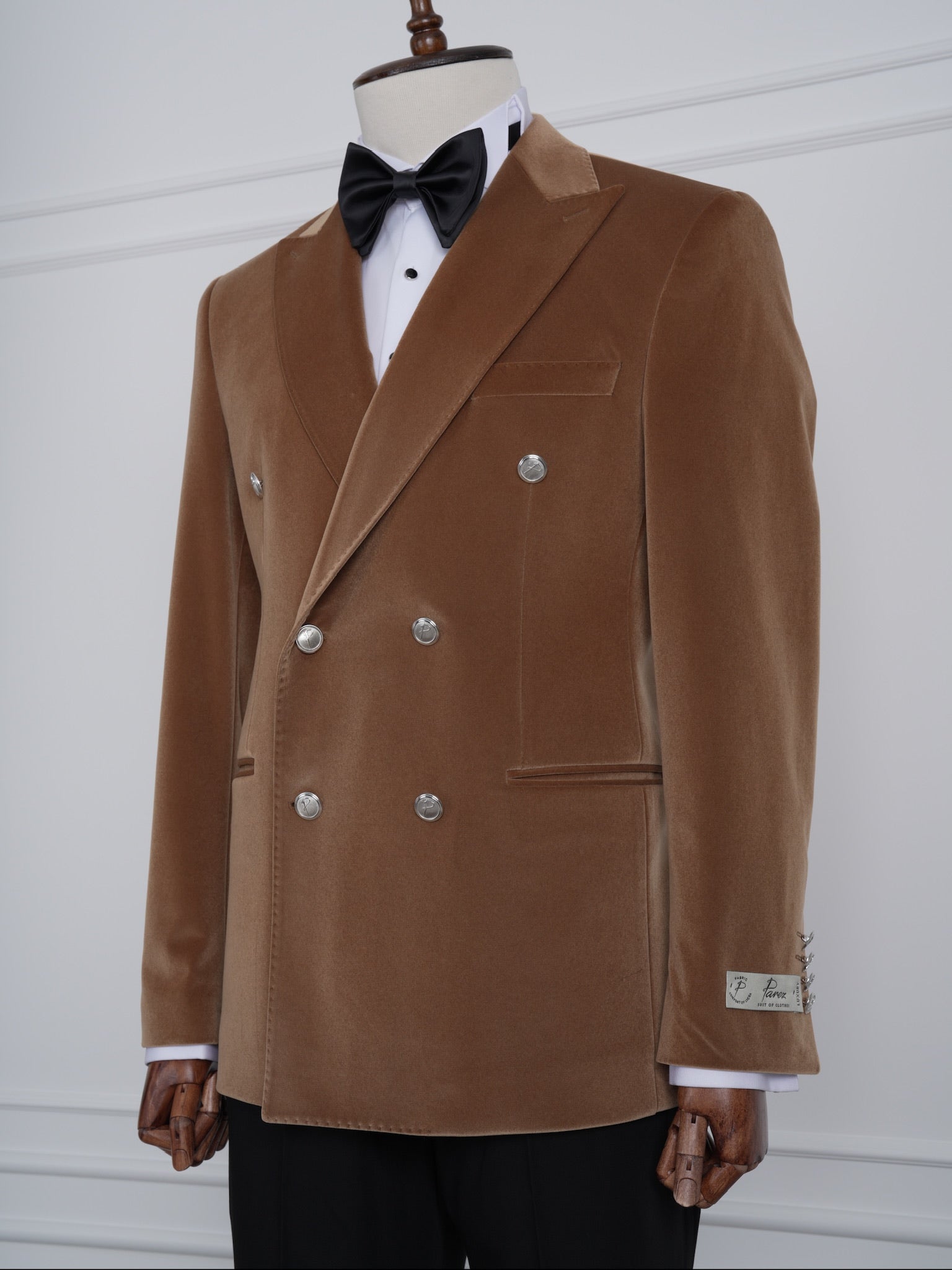 The Monarch Camel Brown Velvet Tuxedo Party Suit with Satin Lapel & Black Pants